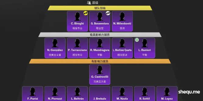 球员在俱乐部呆了有一定时间(非必要条件)或者来的时候带着实力和荣誉来,在更衣室里面有比较大的威望;